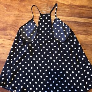 Super cute black and white polka dot razorback blouse. Very flattering neckline, and can easily be dressed up or worn casually. Only worn once and in excellent condition.