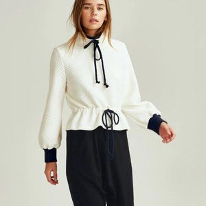Relaxed fit, high neck with drawstring, adjustable drawstring waist, balloon sleeve with rib cuff