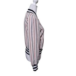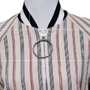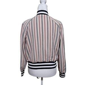 The Fifth Label Striped Sand Red Silky Zip Front Bomber Jacket XXS Casual Retro