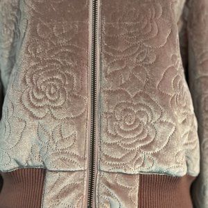 The Fifth Label Velvet Bomber Jacket Pink Roses Size Small Women's