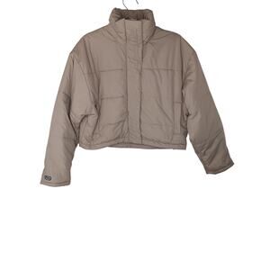 The Fifth Label Women’s Cropped Puffer Jacket Small Beige Taupe Zip Snap Closure