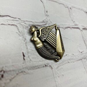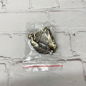 The Fighting 69th Traditional Irish Harp NCO Pin, Aged Brass Finish