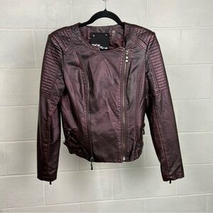 The Fillmore Faux Leather Dual Zipper Moto Jacket SMALL Iridescent Purple Biker