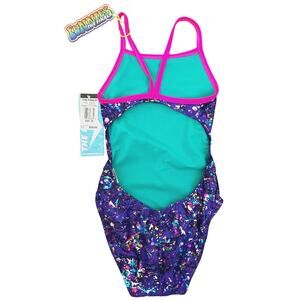 New with tags, Women's The Finals Funkies Rainbow Foil Wingback One Piece SwimSuit, Purple, Size 26.