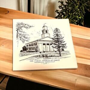 Richard Johns 1738 The First Church Of Christ Woodbridge, Connecticut ceramic trivet tile. can be hun or laid down for display and decoration.