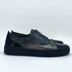 The Flexx Metallic Black Zip Front Slip On Sneakers Size 8.5