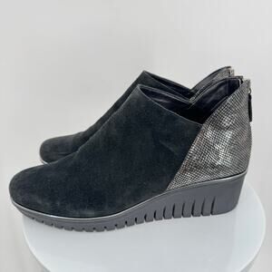 The Flexx Milky Way wedge ankle bootie 9.5 black silver metallic suede leather