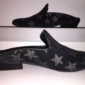 The Sisley style little slide with stars and a rubber sole. Imported Italian Leather Open back entry Flexible bottom 1" Heel height.