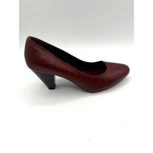 The Flexx Women's Burgundy Leather Round Toe Stack Heel Pumps Size 8.5
