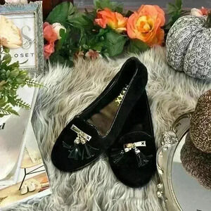 The Flexx Women’s Missliper Suede Loafers Flats w/ Gold Plate and Tassels Black