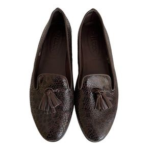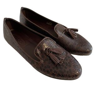 The Flexx by Vera Pelle Brown Snakeskin Print Tassel Loafer 9 NEW