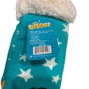 The Flintstone 1 Pair Slippers Sherpa Lined Socks Soft Warm Non Slip Features Fred and Barney One Size NWT