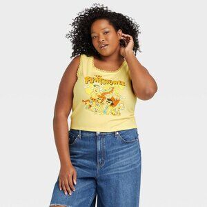 The Flintstones Women's Plus Size Cropped Graphic Tank Top Yellow Size 2X