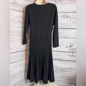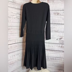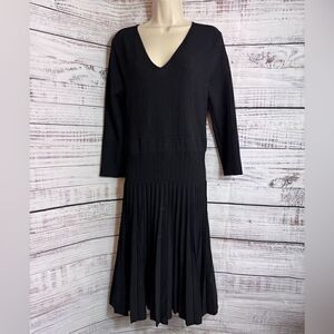 The Fold London Dress Womens Sz L V Neck Knit bandage Sculpt Black Fit & Flare