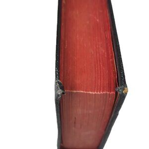 There is minor wear around the edges/corners and the cover is also a bit scuffed. The edges of the pages are red. The book pages are browned and yellowed from age.
