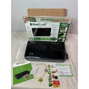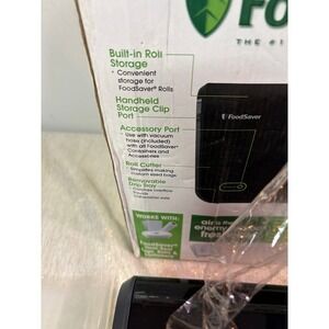 • Removable drip tray keeps food 5x fresher. Two modes ensure airtight seal for Dry and Moist food types. Accessory hose port is compatible with handheld sealer (sold separately) that allows for use with other FoodSaver accessories. Lock-and-latch system allows for single-handed operation, while LED light indicators show where you are at in the sealing process Integrated roll storage and cutter bar allow for easy bag making to help you effortlessly prep food for storage.In great working and tested preowned condition have any questions feel free to ask.