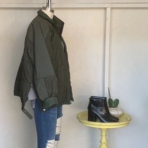 Details: Vintage puffer jacket with side zipper detail, snap detail on wrist, inner and outer pockets in a Men's L.