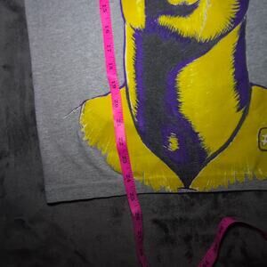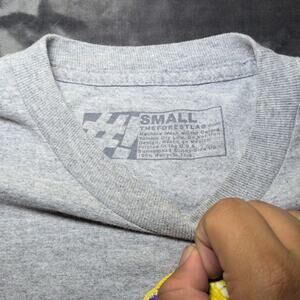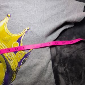 The Forest Lab Kobe Bryant LA Lakers Gray T-shirt in size small is a stylish and comfortable graphic print shirt featuring the legendary basketball player Kobe Bryant. Made of cotton, this short sleeve t-shirt has a crew neckline and a regular fit, making it suitable for all seasons. The retro sports theme of the shirt appeals to fans of both Kobe Bryant and the LA Lakers, making it a great addition to any sports enthusiast's wardrobe. Easy to care for and versatile, this t-shirt is perfect for casual wear.