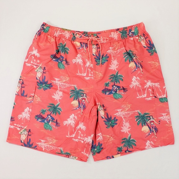 The Foundry Big & Tall Hula Girl Pattern Lined Swim Trunks Mens Size 3X