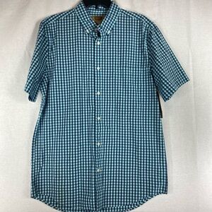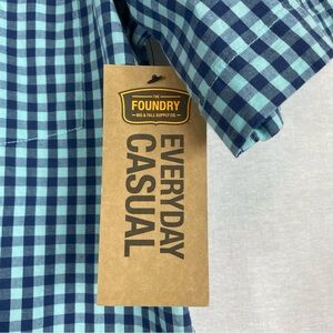 The Foundry Comfort Stretch Men's Short Sleeve Casual Shirt LT Blue Plaid