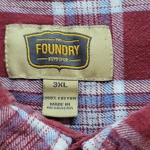 The Foundry Co .Flannel Shirt Men's 3XL Red & Gray Plaid Button Up With Long Sleeves ***READ****