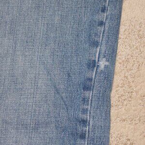These jeans are used but in great condition. There is destress by design marking on the left side(see photo). Button fly, with working zipper. Relaxed fit.
