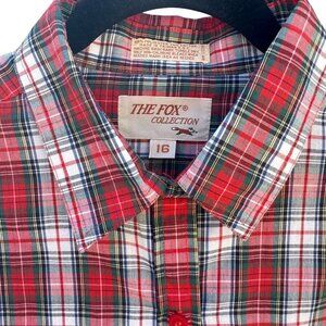 The Fox Collection Womens Red Plaid Button-Up Long Sleeve Cotton Blend Shirt 16