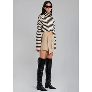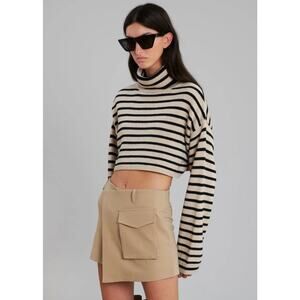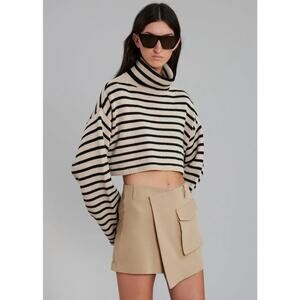 The Frankie Shop Athina Cropped Turtleneck Sweater Beige Stripe - S
