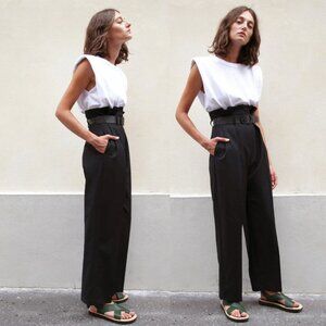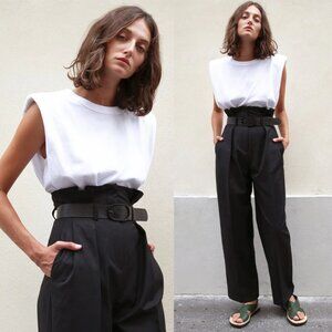The Frankie Shop EVA White Muscle Tee Cotton Sz Small Padded Shoulders Crew Neck