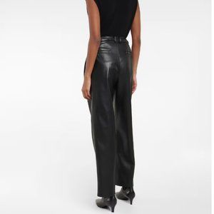 The 'Pernille' trousers have roomy wide legs tailored from glossy faux leather with a double-pleated high-cut waistband.