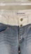 Modern contrast white and denim style, double front button, wide leg, baggy fit, high rise. 100% cotton.