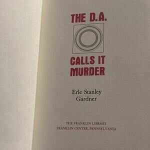 The Franklin Library Leather Bound Book 1989 The D.A. Calls It Murder By Gardner is a collector's edition of a mystery novel by Erle Stanley Gardner. Published by Franklin Library in Pennsylvania in 1989, this leather-bound book is a special attribute that adds value to any book collection. Written in English, the novel is a classic piece of literature that will surely appeal to fans of mystery genre and book collectors alike.
