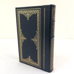 This Novel from the Franklin Library measures 6 inches by 9 inches and is in good used condition. There is some slight fading of the gold edge as shown in the pictures. Leather bound and collectible.
