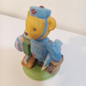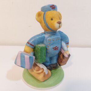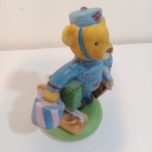 The Franklin Mint Fine Porcelain Max Bear Blue Bellboy 1986 Carrying Luggage