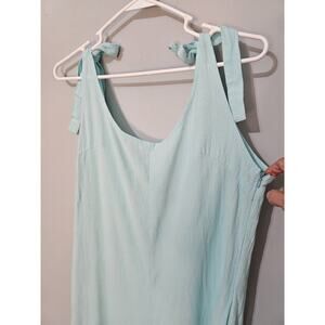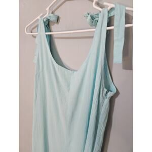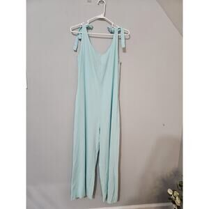 The Free Yoga Jumpsuit Medium Light Blue Pockets Tie Shoulder Side Zip Cropped