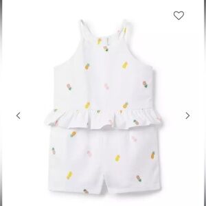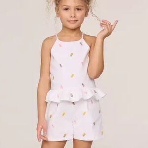 A one-and-done look made for sunny days. Our pique romper gets a tropical twist with a pineapple print we love, plus a peplum ruffle, halter neckline and pockets for the little things.