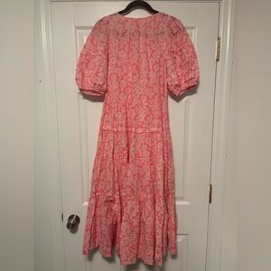 3/4 sleeve, mock, paisley print, pink, midi-calf length