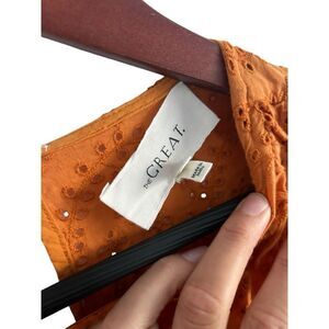 The GREAT. Eyelet Ruffle Flutter 3/4 Sleeve Top Spice Orange Size 2 M Peasant