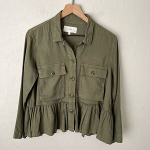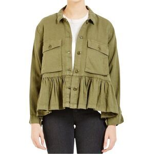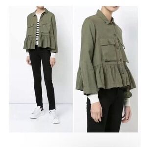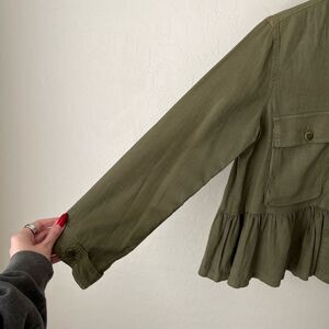 The GREAT. Flutter Peplum Military Cropped Jacket Green Size 1 small