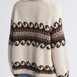 The GREAT Greek Key lodge jacquard alpaca cardigan size 1 - NWOT