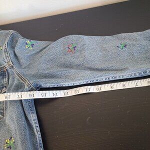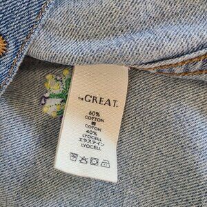 The GREAT. The Boxy Jean Jacket Flower Embroidery Slightly Distressed Size 1