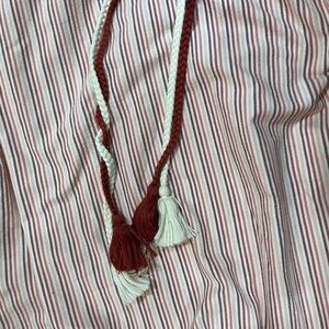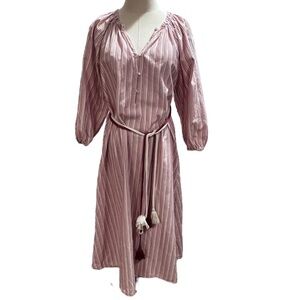 Rosy stripes glide across this breezy cotton frock that's defined at the waist with a tassel-tipped rope belt.