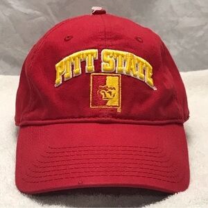 C2 Hat/Cap The Game Made in China Adult Adjustable Strap with Buckle Pitt State in yellowwhitered logo type on face + the game logo patch on rearside / red with the game type embossed into underbill. The Pittsburg State Gorillas, commonly referred to as Pitt State, are the athletic teams that represent Pittsburg State University of Pittsbur, Kansas. They are in the NCAA Division II as a member of the Mid-America Intercollegiate Athletics Association (MIAA). 100 % Cotton