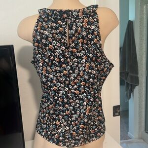 NWOT. Beautiful floral top with two button closure at neck. 95% polyester 5% spandex I cut outs in top that cannot be seen in photos.