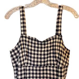 I love this incredible blue gingham dress by the general good. Stretchy, bodycon silhouette. Sleeveless, slip on. 66% polyester, 2% spandex , 32% Cotton with stretch. Women's Size M.