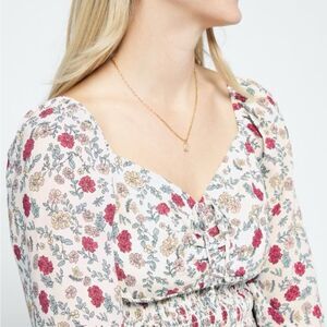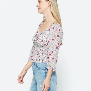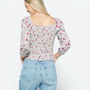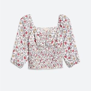 The General Good Elena Smocked Cropped Top in white floral size L