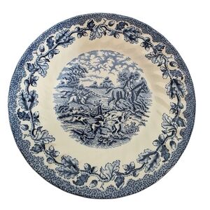 The product is a collectible Royal Wessex collector plate from The Georgian Collection, featuring a blue hunting scene design inspired by Georgian style. This antique plate is made of porcelain or ceramic in England, showcasing traditional English culture and vintage charm. Perfect for collectors or those who appreciate decorative pieces with historical significance.
