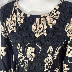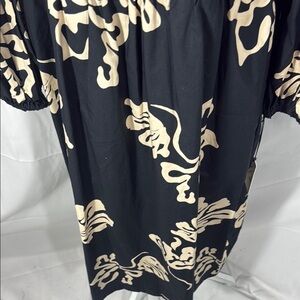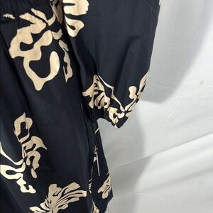 This stylish sundress features a striking black and cream floral pattern, perfect for a casual work environment. The long bishop sleeves and crew neck add a touch of elegance to its flowing silhouette, making it both comfortable and chic. NWT