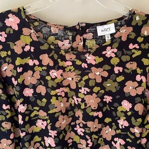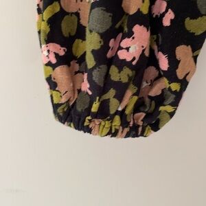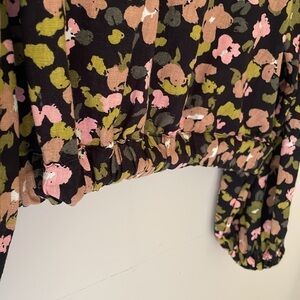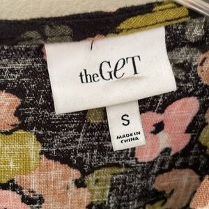 The Get Linen Blend Floral Black Pink Crop Elastic Waist Blouse Shirt Women S
