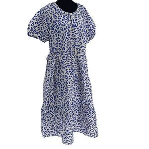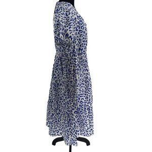 The Get Womens Animal Print Keyhole Puff Sleeve Midi Summer Dress Blue White Large NWT